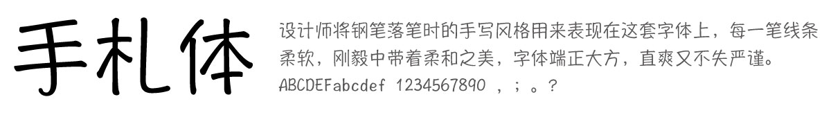 ▼以下为手札体的字型范例: